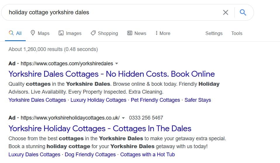 Résultats de recherche Google Ads pour les débutants en publicité pour les petites entreprises