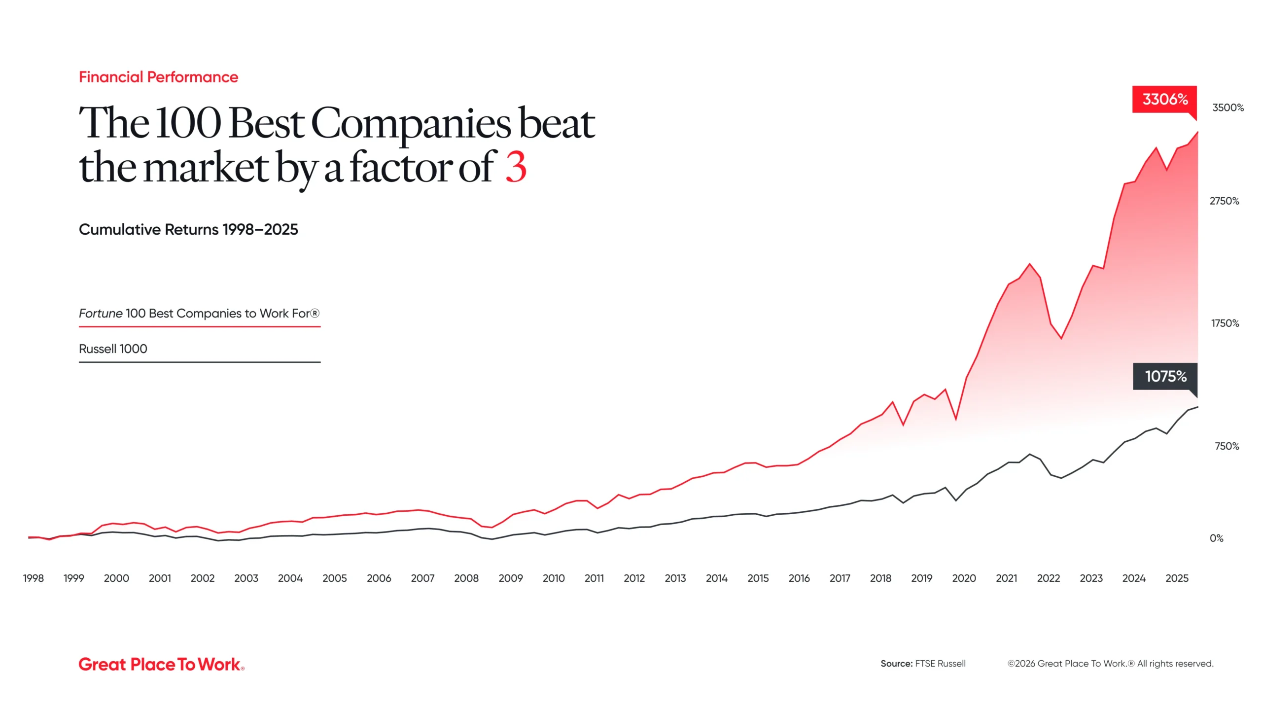 No. Como ocurre con todas las inversiones, el rendimiento pasado no garantiza resultados futuros. Sin embargo, 28 años de datos consistentes sugieren firmemente que priorizar la cultura del lugar de trabajo proporciona una ventaja competitiva resiliente.