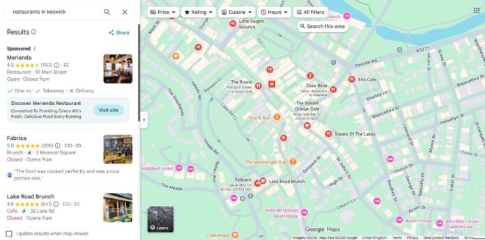 根据我对湖区酒店品牌的测试,相关性必须通过具体的服务属性而不是笼统的描述来证明。例如,搜索“凯西克宠物友好咖啡馆”会触发与“凯西克最佳咖啡”不同的排名集。我的数据分析会抓取您的位置数据,而您的前端内容则提供满足用户意图所需的定性深度。